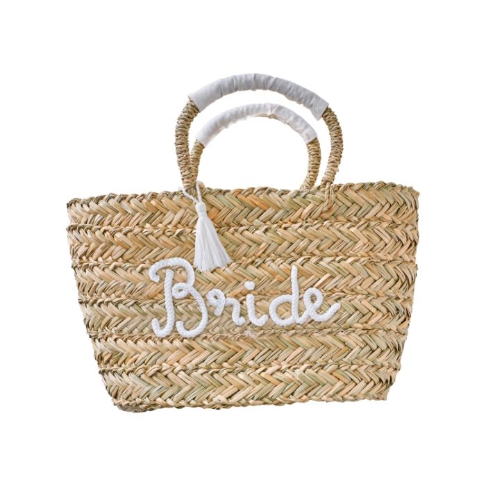 Deze prachtige rotan bruidstas is perfect voor je vrijgezellenfeest of zelfs je huwelijksreis! Op weg naar het strand? Deze tas is perfect voor je vrijgezellenfeest of strandbenodigdheden. Elke verpakking bevat: 1 x rotan tas, afmeting 39 cm (H) x 42 cm (B) x 15 cm (D), de tas bevat witte kwastjes aan de bovenkant en het opschrift 'Bride' van touw op de voorkant genaaid.