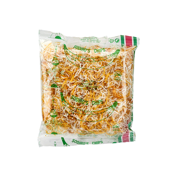 aardappel, vermicelli (mungbonen, erwtenmeel), gebakken uien (tarwemeel (gluten), palmolie, zout), zonnebloemolie.