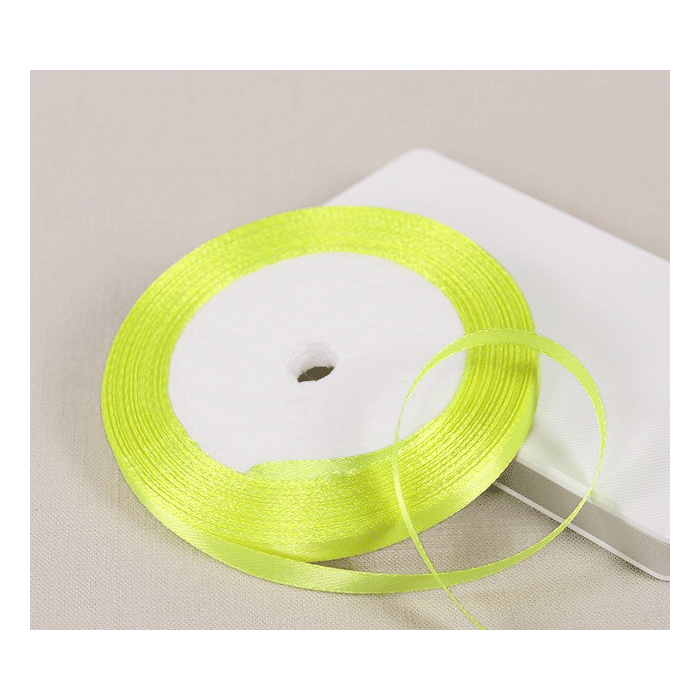 Satijnlint in de kleur neon geel van 6mm breed op een rol van 22,8m.