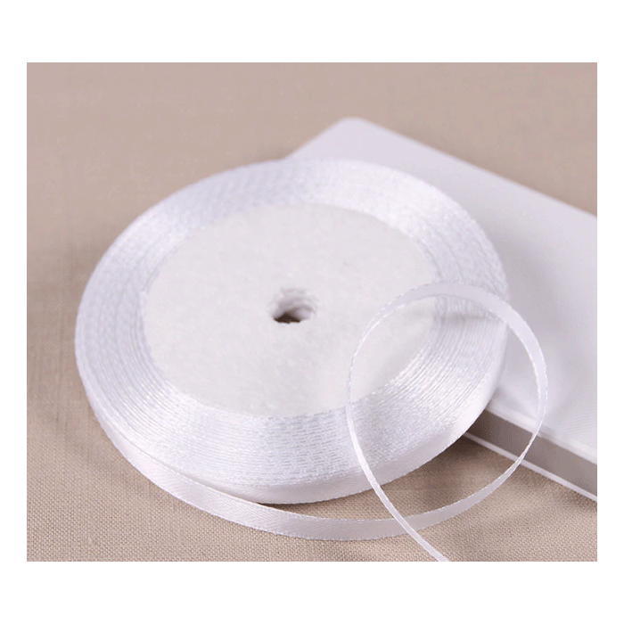 Satijnlint in de kleur wit van 6mm breed op een rol van 22,8m.