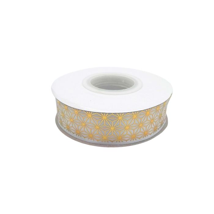 Satijnlint Geo Wit & Goud - 22 meter