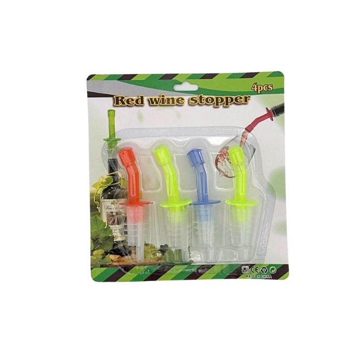 Met deze schenktuit schenk je de inhoud van de fles gedoseerd en zonder morsen uit. Elke set bevat vier schenktuitjes in verschillende kleuren.