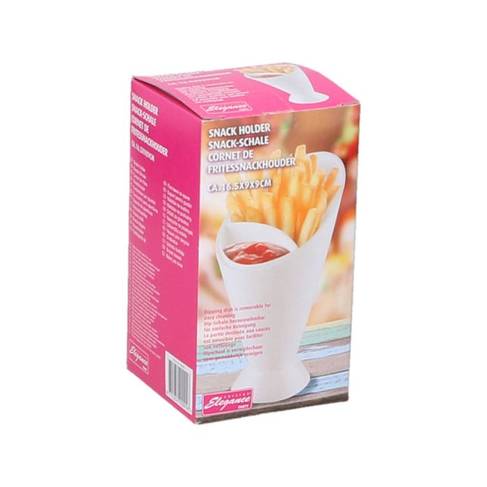 Met deze kunststof puntzak serveer je de frietjes op een wel erg leuke manier. Het schaaltje voor de saus is uitneembaar. De puntzak is gemaakt van polypropeen, dus gemakkelijk schoon te maken en duurzaam.