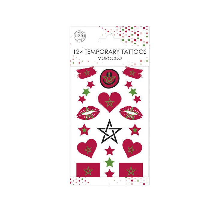 Laat je support zien aan je favoriete land met deze leuke nep tattoos in Marokko thema. Elke verpakking bevat 16 tattoos.