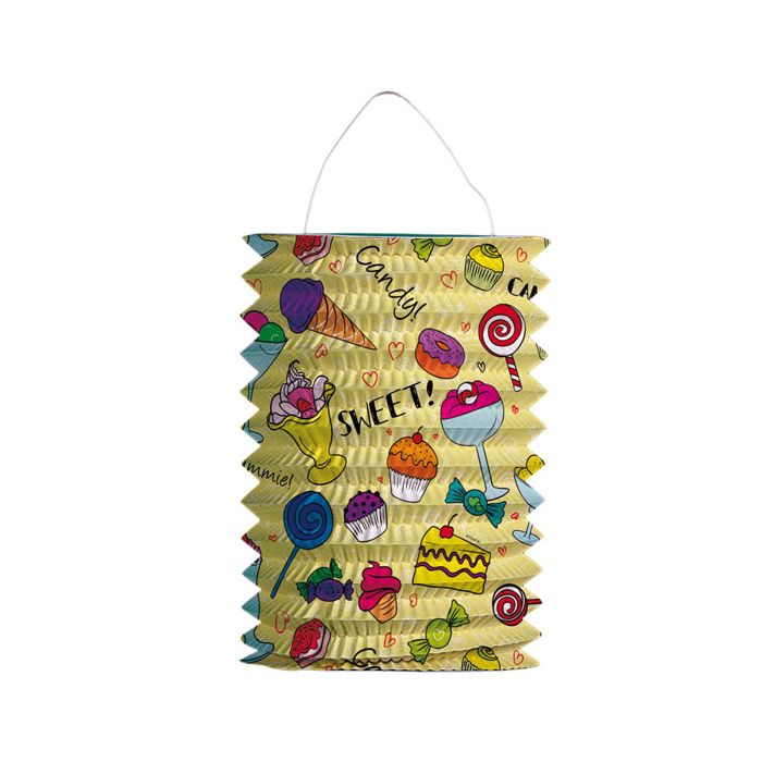 Treklampion met afbeeldingen van verschillende snoepjes en gebakjes. Leuk voor Sint Maarten!