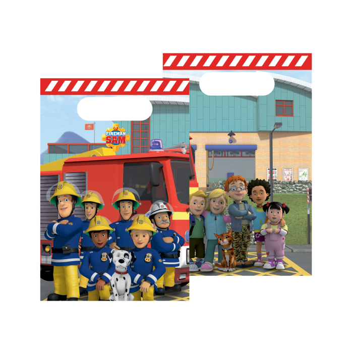 Papieren uitdeelzakjes met brandweerman Sam. Een uitdeelzakje is 15,8x23,6cm groot en verpakt per 8 stuks.