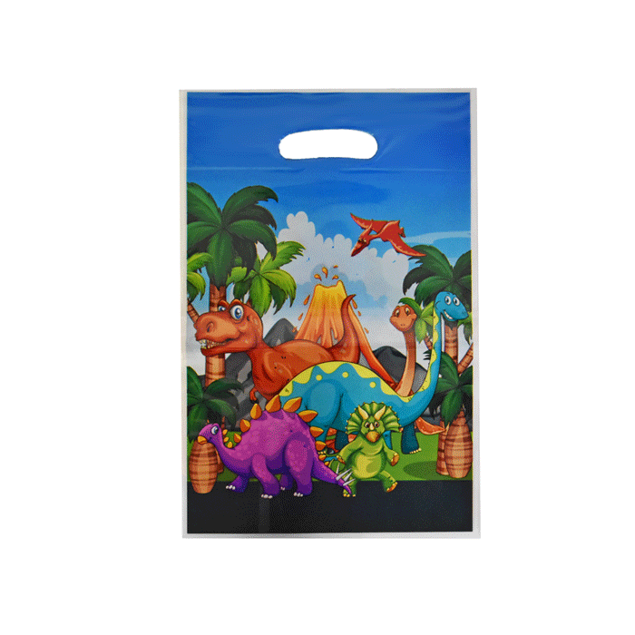 Leuke dinosaurus uitdeelzakjes om te vullen met cadeautjes en/of snoepjes. De zakjes zijn 16,5 x 25 cm groot en verpakt per 12 stuks.