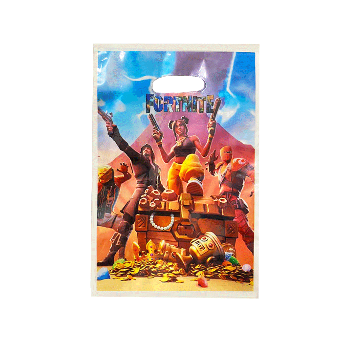 Plastic uitdeelzakjes met Fortnite thema. De zakjes zijn 16,5 x 25 cm groot en verpakt per 12 stuks.