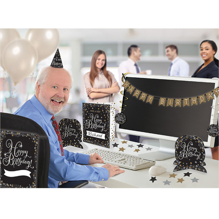 Met deze luxe set versieringen zet jij je collega goed in het zonnetje op zijn/haar verjaardag! De set bestaat uit 28 delen.