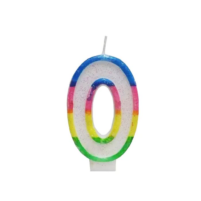 Verjaardagskaars cijfer 0 voor op de taart. Combineer met andere cijfers. De kaars is 6,5 cm groot.