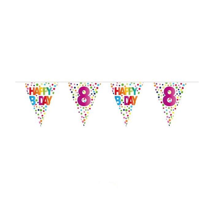 Feestelijke 40 jaar vlaggenlijn . De vlaggenlijn is 10m lang en de vlaggetjes hebben een lengte van 27cm. Op een vlaggenlijn hangen 15 vlaggetjes.