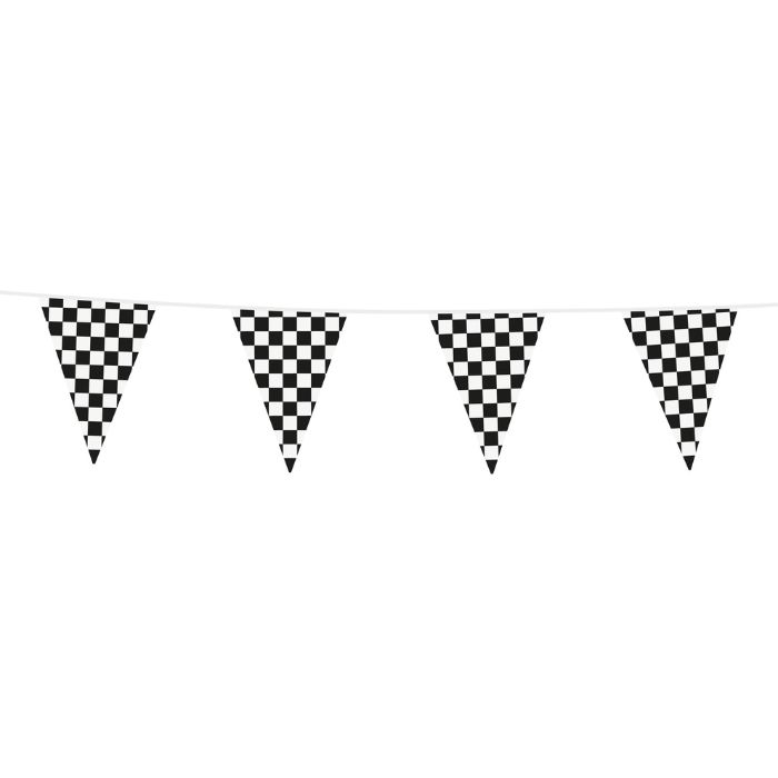 Ben je een liefhebber van racen en plan je binnenkort een feestje? Met deze racevlag vlaggenlijn start je feest in een mum van tijd! Gemaakt van plastic en maar liefst 10 meter lang, voegt deze vlaggenlijn een leuke en feestelijke sfeer toe aan jouw evenement. Of je nu een verjaardagsfeest, een race-themafeest of een ander speciaal evenement organiseert, deze racevlag vlaggenlijn zal zeker de aandacht trekken en iedereen in de feeststemming brengen. Laat het racen maar beginnen en geniet van een fantastisch feest!