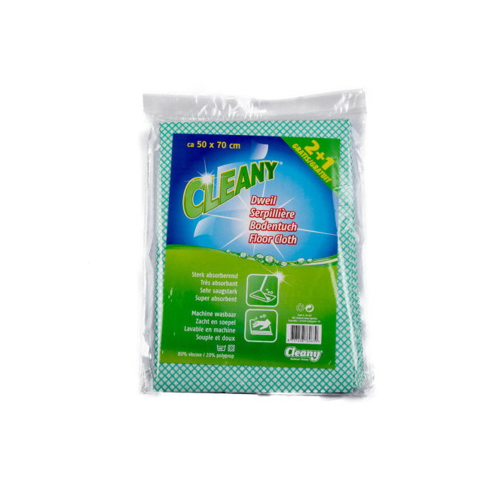 De Cleany vloerdoekjes zijn ideaal voor het reinigen van alle harde/gladde oppervlakken. Sterk absorberend en machine wasbaar. Elke verpakking bevat drie doekjes van 50x70cm.