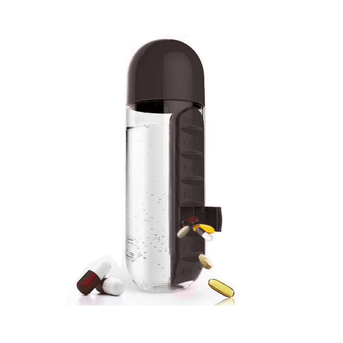 Waterfles met Pillendoos Zwart