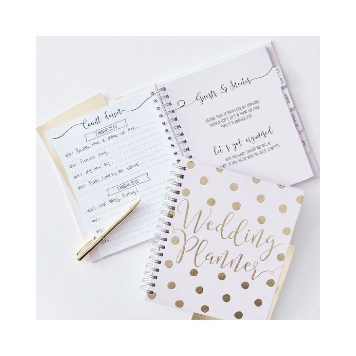 Een bruiloft plannen is een spannende en speciale gelegenheid in je leven. Met de hulp van deze prachtige weddingplanner uit de Gold Wedding collectie van Ginger Ray, kun je er zeker van zijn dat alles soepel verloopt op jullie grote dag. De kaft is roze van kleur met gouden stippen.